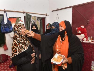 तिहेरी तलाक विधेयक लोकसभेत मंजूर झाल्यानंतर मुस्लिम महिलांनी मिठाई वाटून आनंद साजरा केला.