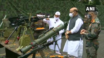 विजयादशमी दसऱ्याच्या शुभ मुहूर्तावर संरक्षणमंत्री राजनाथ सिंह यांनी पश्चिम बंगालच्या दार्जिलिंगमधील सुकना युद्ध स्मारक येथे शस्त्रपूजा केली.