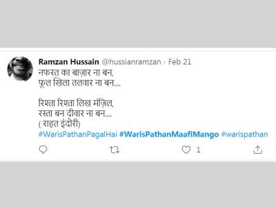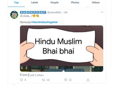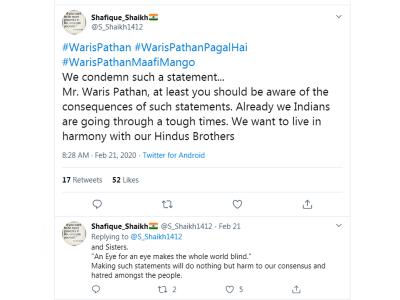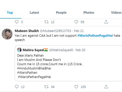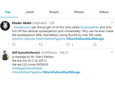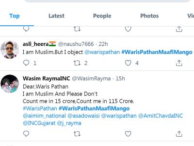 या पार्श्वभूमीवर, ट्विटरवरून मुस्लीम नेटिझन्सनीही वारिस पठाण यांची 'शाळा' घेतली. आम्ही भारतीय आहोत, आम्हाला तुमच्या 15 कोटींमध्ये मोजू नका, असं अनेक मुस्लीम धर्मीयांनी त्यांना सुनावलंय.