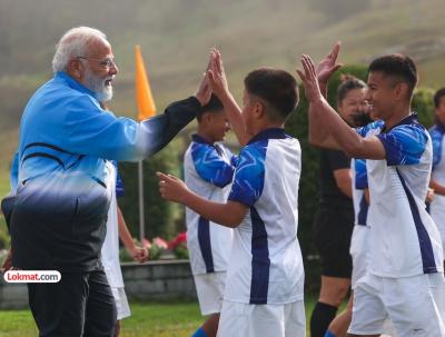 गोलsss... पंतप्रधान नरेंद्र मोदी सिक्कीमच्या तरुणांसोबत खेळले फुटबॉल, PHOTOS ची रंगली चर्चा