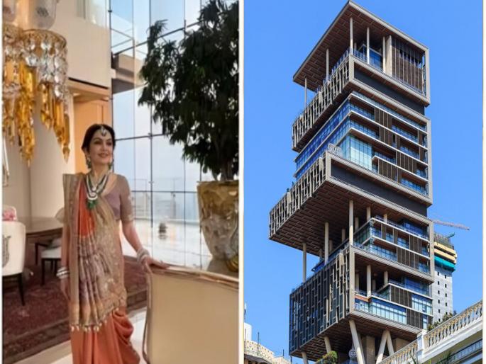 1 / 6रिलायन्स उद्योग समुहाचे प्रमुख मुकेश अंबानी यांचं अँटिलिया निवासस्थान हे सर्वांच्या कुतुहलाचा विषय ठरलेलं आहे. मुंबईतील उच्चभू भागात असलेली ही आलिशान इमारत ही जगातील सर्वात महागड्या निवासस्थानांपैकी एक आहे. दरम्यान, एका व्हिडीओमधून अंबानींच्या अँटिलिया निवासस्थानाच्या अंतर्भागातील आतापर्यंत न पाहिलेले फोटो समोर आले आहेत. 2 / 6मुकेश आणि नीता अंबानी यांच्या या निवास्थानाच्या अंतर्भागातील अत्यंत नयनरम्य नजारा, भव्यदिव्यता पाहून लोक अवाक् झाले आहेत. अँटिलिया निवासस्थानामधील हा अत्यंत खास व्हिडीओ प्रसिद्ध मेकअप आर्टिस्ट मिक्की कॉन्ट्रॅक्टर यांनी शेअर केला आहे. तसेच हा व्हिडीओ पाहून लोक अवाक् झाले आहेत. 3 / 6या व्हिडीओमध्ये नीता अंबानी यांनी सुंदर अशी ऑरेंज कलरची साडी परिधान केली आहे. मात्र या व्हिडीओमध्ये लोकांचं लक्ष हे व्हिडीओमध्ये दिसत असलेली घरातील सुरेख सजावट, आलिशान झुंबर, बाल्कनीमधून दिसणारा समुद्राचा नजारा, प्रत्येक कोपऱ्यात दिसणारा श्रीमंती थाट पाहून प्रत्येकाचं भान हरपत आहे. 4 / 6अँटिलियामधील सर्वात मोठी खास बाब म्हणजे इथल्या मोठमोठ्या काचेच्या भिंती आहे. त्यामधून या उंच इमारतीवरून बाहेरचं सुंदर दृश्य दिसतं. तसेच घरामध्ये भरपूर सूर्यप्रकाशही येतो. या काचेच्या भिंतींमधून मुंबईतील गगनचुंबी इमारती आणि अरबी समुद्राचं सुंदर दृश्य दिसतं. 5 / 6याशिवाय अँटिलियामध्ये संगमरमरच्या फरश्या बसवण्यात आल्या आहे, त्यामुळे या निवासस्थानाचं सौंदर्य आणखीनच वाढलं आहे. एवढंच नाही तर नीता अंबानी यांनी आपल्या घराला भारतीय कला आणि आधुनिक स्टाईल मिळून सजवलं आहे. 6 / 6या व्हिडीओमध्ये अँटिलियाच्या बाल्कनीचंही सुंदर दृष्य दिसतं. येथून समुद्र आणि सूर्यास्ताचं दृश्य खूप विलोभनीय असं दिसतं. तसेच बाल्कनीमध्ये मोठमोठ्या कुंड्यांमध्ये झालं लावलेली आहेत. त्यामुळे या बाल्कनींना टेरेस गार्डनचा लूक आला आहे.