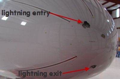 या वीजेपासून विमानाला नुकसान होऊ नये किंवा आतील प्रवाशांना धोका निर्माण होऊ नये म्हणून बाहेरच तिला थोपविले जाते. यासाठी विमानाच्या अॅल्युमिनिअम बॉडीवर एक विशेष आवरण लावलेले असते.