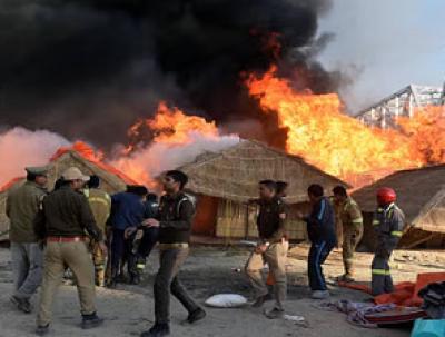 रविवारी महाकुंभमेळा परिसरातील सेक्टर १९ मध्ये भीषण आग लागली. यामुळे गीता प्रेसमधील १८० कॉटेज जळून खाक झाल्या.