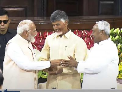 संसदेच्या सेंट्रल हॉल मध्ये आज NDA च्या सर्व पक्षांची मोठी बैठक झाली. त्यावेळी स्टेजवर अनेक बडे नेते उपस्थित होते.
