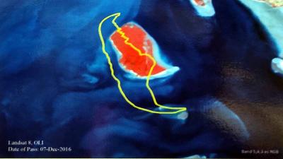 या बेटाच्या सीमा जर तुम्ही पाहिल्या तर एक अजून धक्कादायक गोष्ट समोर येते. ती म्हणजे या बेटाने आपली जागा बदलली आहे. ७ डिसेंबर २०१६ रोजी लँडसेट-८ ने पुन्हा या बेटाचा फोटो घेतला तेव्हा ज्या बेटाचे क्षेत्र घटले आहेत, तसेच त्याने आपले स्थानही बदलले आहे. म्हणजेच या बेटाचा खालचा भाग वेगाने तुटत असून तो लाटांबरोबर दुसऱ्या बाजूला जात आहे.