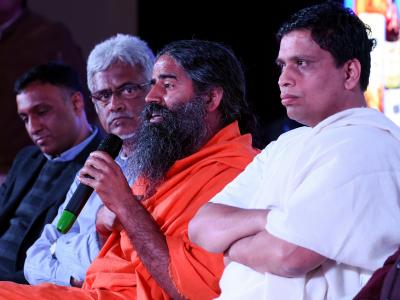योग गुरू बाबा रामदेव व आचार्य बालकृष्ण यांनी ऑनलाइन प्लॅटफॉर्म्सच्या अधिकाऱ्यांसह पत्रकार परिषद घेतली.