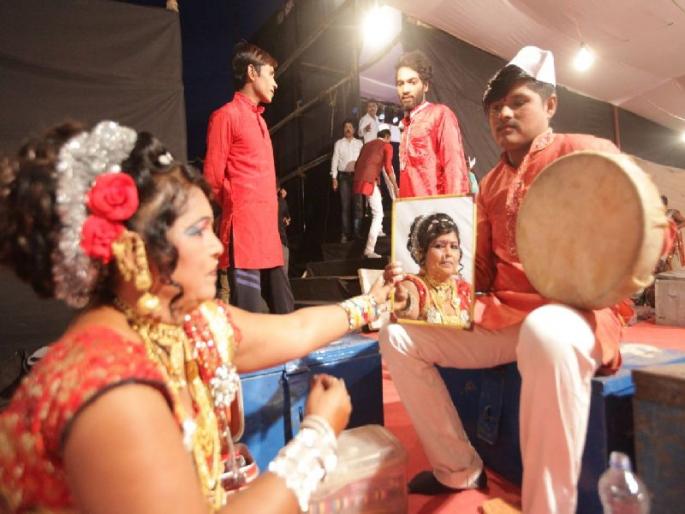 1 / 5नवी मुंबई- तामशासम्राज्ञी विठाबाई नारायणगावकर जीवनगौरव पुरस्कार प्रदान सोहळ्यासाठी अहमदनगर जिल्ह्यातून आलेल्या तमाशा फडाची काही क्षणचित्रे. 2 / 5लावणीची पूर्वतयारी करताना एक कलाकार. 3 / 5लावणी सादर करण्यापूर्वी पायातील चाळांची चाचपणी करताना. 4 / 5लावणी सादर करण्यापूर्वी वेशभूषेवरून शेवटचा हात फिरवताना महिला कलाकार. 5 / 5महाराष्ट्र राज्य आयोजित तामशासम्राज्ञी विठाबाई नारायणगावकर जीवनगौरव पुरस्कार प्रदान सोहळा प्रदान करताना मंत्री विनोद तावड़े श्रीमती राधाबाई खोडे नाशिककर यांच्या हस्ते मधुकर नेराळे यांना देण्यात आला.