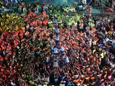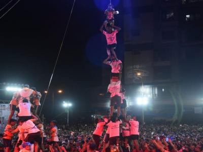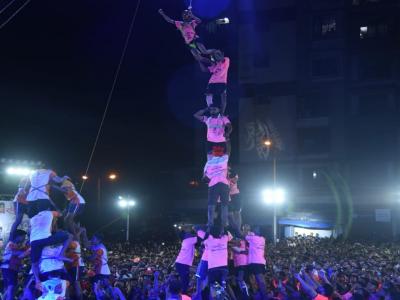 नवी मुंबईतल्या साई तेजस प्रतिष्ठाननंही दहीहंडीसाठी एकावर एक थर लावले होते.