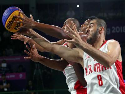 3 बाय 3 बास्केटबॉलच्या कांस्यपदकाच्या लढतीत इराणचा अमिरहोसेन अझारी आणि थायलंडच्या निथिपोल सवाथवोर्न यांच्यात चेंडूवर ताबा मिळवण्यासाठीची धडपड...