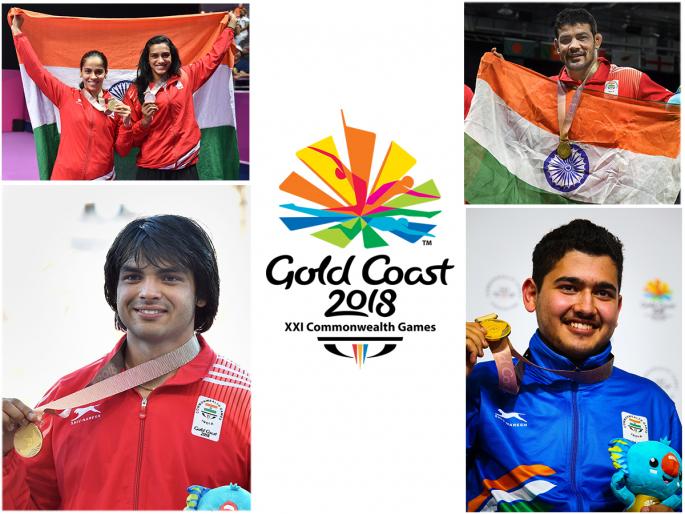 1 / 9भारताची 'आयर्न लेडी' अशी ओळख असणाऱ्या मेरी कोमने राष्ट्रकुल स्पर्धेत पहिलवहिलं पदक जिंकलं.2 / 9अवघ्या 15 वर्षांच्या अनीश भानवाल याने 25 मीटर रॅपिड फायर प्रकारात सुवर्णपदक पटकावले.3 / 9मनिका बत्रा हिने टेबल टेनिसमध्ये सांघिक आणि वैयक्तिक प्रकारात चमकदार कामगिरी केली. त्यामुळे भारताला टेबल टेनिसच्या महिला एकेरी आणि सांघिक या दोन्ही प्रकारात सुवर्णपदक जिंकता आले. 4 / 9अवघ्या 16 वर्षांच्या मनू भाकेर हिने 10 मीटर एअर पिस्तुल प्रकारात सुवर्णपदक जिंकण्याची कामगिरी करून दाखविली. 5 / 923 वर्षांच्या मीराबाई चानू हिने वेटलिफ्टिंगच्या 48 किलो वजनी गटात भारताला सुवर्णपदक मिळवून दिले.6 / 9भालाफेकीत सुवर्णपदक जिंकत नीरज चोप्रा याने भारतीयांना सुखद धक्का दिला. 7 / 9सायना आणि पी.व्ही. सिंधू यांच्यामुळे बँडमिंटनचे सुवर्ण आणि रौप्यपदक भारताच्या खात्यात जमा झाले. 8 / 9सायना नेहवाल हिने अंतिम फेरीत भारतच्याच पी.व्ही. सिंधूला नमवत सुवर्णपदकावर नाव कोरले. 9 / 9सुशील कुमारने राष्ट्रकुल स्पर्धेत सुवर्णपदक जिंकून आपल्या टीकाकारांना चोख प्रत्युत्तर दिले.