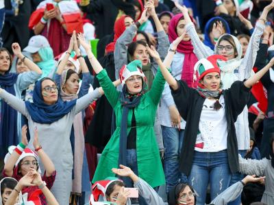 गुरुवारी आजादी स्टेडियममध्ये इराण आणि कंबोडियामध्ये फिफा क्वालिफायर मॅच बघण्यासाठी मोठ्या संख्येने महिला उपस्थित होत्या.