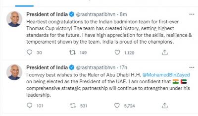 भारताच्या या ऐतिहासिक विजयानंतर बॅडमिंटन टीम इंडियाचे दशभरातून कौतूक होत आहे. पंतप्रधान नरेंद्र मोदी, राष्ट्रपती रामनाथ कोविंद, क्रीडामंत्री किरण रिजीजू यांनीही ट्विटरवरुन टिम इंडियाचं अभिनंदन केलं आहे.