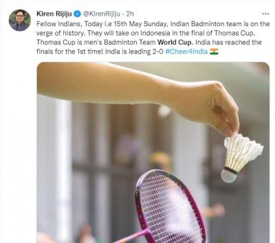 भारतीय संघाच्या या बॅडमिंटन विजयाचा देशभरात जल्लोष करण्यात येत असून सोशल मीडियावरही थॉमस कप 2022 ट्रेंड करत आहे.