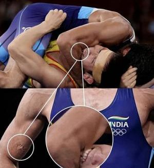 ऑलिम्पिकमधील उपांत्य फेरीच्या सामन्यात रवी दहियानं प्रतिस्पर्धी कझाकिस्तानच्या खेळाडूकडूचा पराभव केला. यावेळी रडिचा डाव खेळत त्याने रवीच्या दंडावर चावा घेतला. त्याने घेतलेल्या चाव्याचे व्रण रवीच्या दंडावर स्पष्ट दिसत आहेत आणि या जखमेसह भारतीय कुस्तीपटूला गुरुवारी फायनलमध्ये उतरावे लागणार आहे.