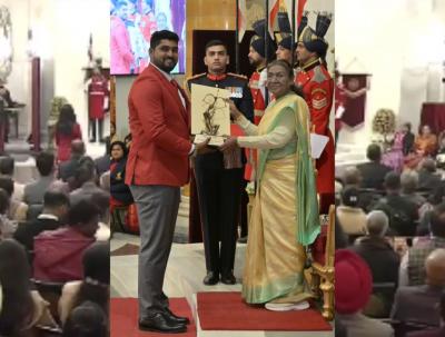 पॅरिस पॅरालिम्पिक स्पर्धेत पुरुष गटातील गोळाफेक F46 प्रकारात रौप्य पदक जिंकणाऱ्या सचिन खिलारी याने राष्ट्रपतींच्या हस्ते अर्जुन पुरस्कार स्वीकारला.