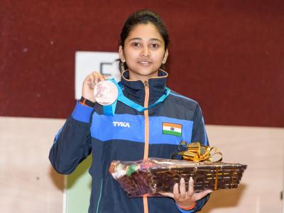 मेहुलीनेदेखील १० मीटर एअर रायफल प्रकारात कांस्य जिंकले. त्याने २२८.४ गुणांची नोंद केली.