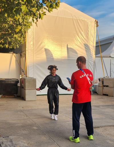 अकोस यांनी लिहिलं होतं की, सेमीफायनलनंतर २.७ किलोग्रॅम अतिरिक्त वजन वाढले होते. ते कमी करण्याशिवाय काही पर्याय नव्हता. मध्यरात्री ते पहाटे ५.३० पर्यंत तिने विविध कार्डियो मशिनवर सतत मेहनत घेतली होती. केवळ २-३ मिनिटेच आराम केला होता.