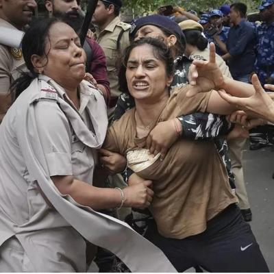 सोशल मीडियात सध्या दिल्लीतील या घटनेचे फोटो व्हायरल होत असून कुस्तीपटू ट्रेंड करत आहेत. दरम्यान, विनेश फोगाटने नया भारत म्हणत घडल्या प्रकारावर संताप व्यक्त केलाय.