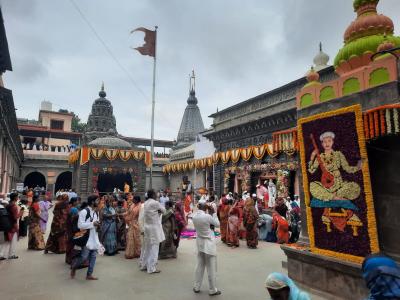 पुणे : श्री संत तुकाराम महाराजांच्या पालखी आज पंढरपूरकडे प्रस्थान करणार आहे. त्यानिमित्ताने देहूतील देऊळवाड्यात पहाटे पासूनच भाविकांच्या रांगा लागलेल्या असून भाविकांना दर्शनबारी मधून मंदिरात दर्शनासाठी सोडले जात आहे. श्री संतुकाराम महाराज शिळा मंदिरांमध्ये देखील भाविकांनी मोठ्या प्रमाणात गर्दी केली आहे. इंद्रायणी नदी काठ भाविकांनी फुलून गेला आहे. हरिनामाचा गजर करत दिंड्या भागवत धर्माची पताका घेऊन मंदिरात प्रदक्षिणेसाठी येत आहे. मंदिराला फुलांची आकर्षक सजावट करण्यात आलेले आहे. महाद्वार, हनुमान मंदिर, ज्या ठिकाणाहून पालखी प्रस्थान होते तो भजनी मंडप, गरुड मंदिर, आवारातील दीपमाळा, श्री राम मंदिर, श्री हरिहरेश्वर मंदिर व शिळा मंदिर या ठिकाणी केलेली फुलांची सजावट भाविकांचे लक्ष वेधून घेत आहे.