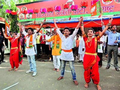 विजयाची चव वेगळीच असते असे म्हणतात. भाजपाच्या महिला कार्यकर्त्यांनी ढोल-ताशांच्या गजरात विजय साजरा केला.