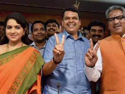 लोकसभेप्रमाणे विधानसभेतही मोदी लाटेने भाजपाला यश मिळवून दिले. त्यानंतर नरिमन पॉईंट येथील भाजपा प्रदेश कार्यालयात विजयश्री साजरी करण्यासाठी आलेल्या कार्यकर्त्यांनी एकमेकांचे हात हातात घेऊन ऐक्याची साद देऊन विजयाचे पथनाट्य सादर केले.