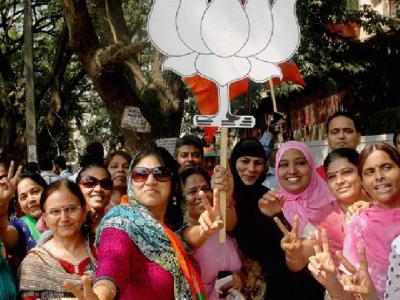 विजयाची चव वेगळीच असते असे म्हणतात. भाजपाच्या महिला कार्यकर्त्यांनी ढोल-ताशांच्या गजरात विजय साजरा केला.