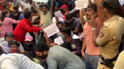 १४ मार्च रोजी होणारी MPSC परीक्षा कोरोनाच्या पार्श्वभूमीवर पुढे ढकलण्याचा निर्णय ठाकरे सरकारने घेतला, आज दुपारी अचानक आलेल्या परिपत्रकामुळे विद्यार्थ्यांमध्ये संतापाची लाट उसळली, सरकारच्या या निर्णयाविरोधात राज्यभरात विद्यार्थी रस्त्यावर उतरले आहेत. (PC Credit - Tanmay Thombare)