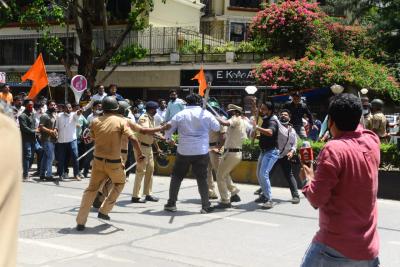 केंद्रीय मंत्री नारायण राणे यांनी मुख्यमंत्री उद्धव ठाकरे यांच्याबद्दल केलेल्या आक्षेपार्ह विधानानंतर राज्यभरात शिवसैनिकांनी संतप्त पवित्रा घेतला. ठिकठिकाणी शिवसैनिक रस्त्यावर उतरले. राणे यांच्यावरील संतापाच्या भरात शिवसैनिकांनी भाजपा कार्यालयं फोडली.