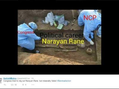 वांद्रे पूर्व पोटनिवडणुकीत सपाटून मार खावा लागलेल्या नारायण राणेंची सोशल मीडियावर प्रचंड खिल्ली उडवली जात आहे. खोचक कॉमेंट्स कार्टून्सद्वारे राणेंच्या जखमेवर मीठ चोळण्याचे काम नेटीझन्स करत आहेत.