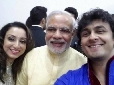 अनेक बॉलिवूड सेलिब्रिटींनाही पंतप्रधान नरेंद्र मोदींसोबत सेल्फी काढण्याचा मोह आवरत नाही. प्रसिद्ध गायक सोनू निगमसह मोदींचा हा सुहास्य सेल्फी.