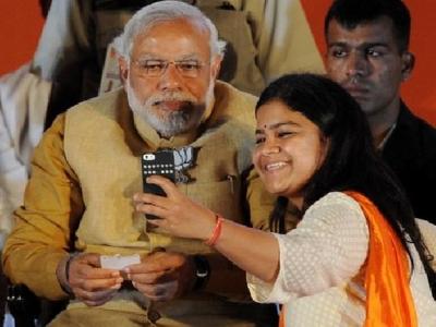 गेल्या वर्षी ऑक्टोबरमध्ये महाराष्ट्रात पार पडलेल्या निवडणूक प्रचार सभेदरम्यान पंतप्रधानांसोबत सेल्फी काढण्याचा मोह भाजपा नेत्या पूनम महाजन यांनाही आवरला नाही.