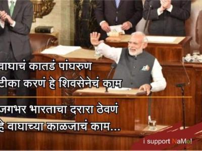 शिवसेना वाघाचं कातडं पांघरून टीका करते पंतप्रधान मोदी मात्र वाघाच्या काळजाने जगात भारताचा दरारा कायम ठेवतात.