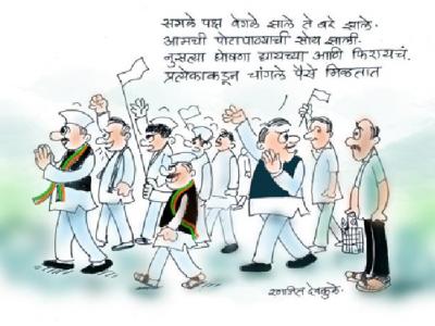 विद्यमान राजकारणावर विशेषत: विधानसभा निवडणुकीच्या संदर्भात भाष्य करणारी लोकमतच्या वाचकांनी पाठवलेली निवडक व्यंगचित्रं..