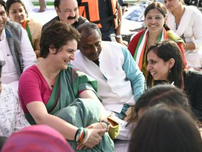 काँग्रेसच्या महासचिव प्रियंका गांधी वाड्रा या तीन दिवसांच्या उत्तर प्रदेश दौऱ्यावर आहेत. या दौऱ्यावेळी त्यांनी गंगा नदीचे पर्यटन करण्याचा आनंद लुटला. त्यावेळी बोटीत काही विद्यार्थीनींनाही प्रियंका यांनी आपल्या सोबत घेतले होते.