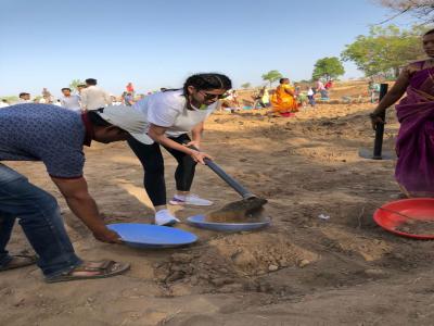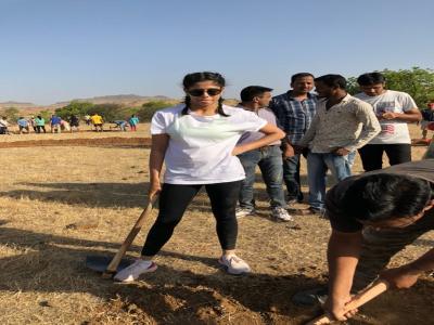 महाराष्ट्रदिनी सई ताम्हणकरने सुकळवाडी गावात केले श्रमदान
