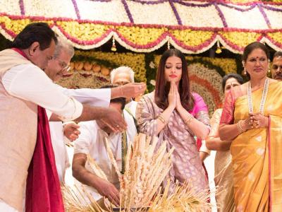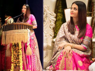गुलाबी रंगाच्या साडीमध्ये ऐश्वर्या अतिशय सुंदर दिसत होती.