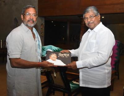 आता, भाजपा प्रदेशाध्यक्ष चंद्रकांत पाटील यांनी नाना पाटेकर यांची त्यांच्या पुण्यातील घरी जाऊन भेट घेतली. या भेटीत पाटील यांनी नानां एक पुस्तक आणि मोदींचं चित्र असलेला मगही भेट दिलाय.