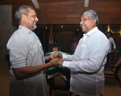 Chandrakant Patil: चंद्रकांत पाटलांची नानांसोबत 'समाधान'कारक भेट, मोदीमगही दिला भेट
