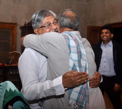 पाटील यांनी आपल्या ट्विटर अकाऊंटवरुन या भेटीचे फोटो शेअर केले आहेत. त्यामध्ये, नानांची कडकडून गळाभेट घेतल्याचे दिसून येते.