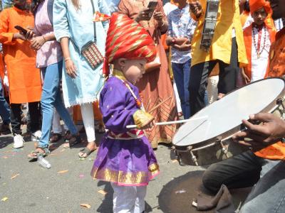 शिवजन्मोत्सव सोहळ्यात बाल शिवाजी ताशा वाजवण्यात दंग
