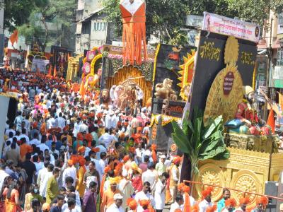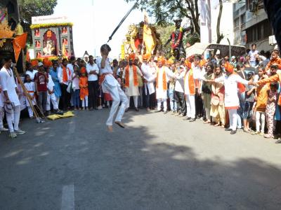 भारताच्या इतिहासातील शिवकालीन युध्दकला सादर करणाऱ्या रणरागिनी, फुलांची आकर्षक सजावट असलेला जिजाऊ मॅांसाहेब शहाजी महाराज शिवज्योत मुख्य स्वराज्यरथ, ढोलताशा पथकाचा रणगजर, सनई-चौघडयांचे मंगलमय सूर शिवभक्तांनी केलेला जय शिवाजी जय भवानीचा जयघोष अशा नयनरम्य वातावरणात पुण्यात चक्क शिवशाही अवतरली. निमित्त होते, शिवजयंती महोत्सव समिती पुणे तर्फे लालमहाल येथून आयोजित शिवजन्मोत्सव स्वराज्यरथ सोहळा या भव्यदिव्य मिरवणुकीचे. तब्बल ९५ स्वराज्यरथांनी छत्रपती शिवाजी महाराजांना मानवंदना दिली. (सर्व छायचित्रे - कपिल पवार)