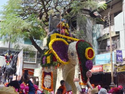 फुलांनी सजवलेल्या हत्तीवर विराजमान शिवछत्रपती राजे