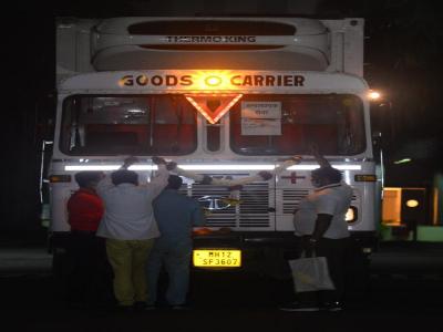 'कोल्ड चेन व्हॅन' लोहगाव विमानतळाकडे रवाना; ही लस २ ते ८अंश सेल्सियस इतक्या तापमानात ठेवणे आवश्यक असल्याने या व्हॅनमधून तितके तापमान नियंत्रित करण्यात आले आहे.