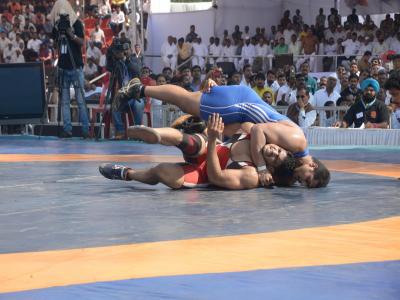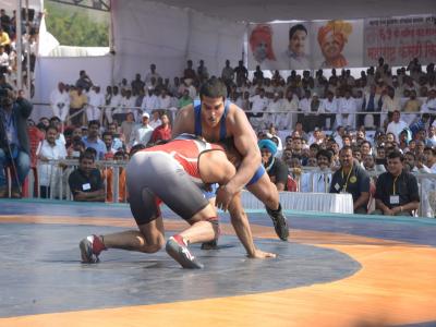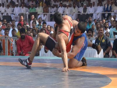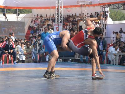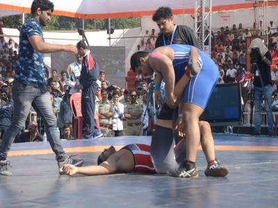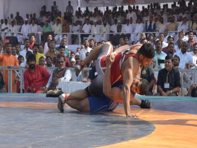 महाराष्ट्र केसरी स्पर्धेदरम्यान अभिजीत कटके, शिवराज राक्षे यांच्यातील लढतीचे चित्तथरारक क्षण (भूगाव, पुणे)