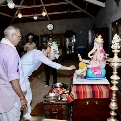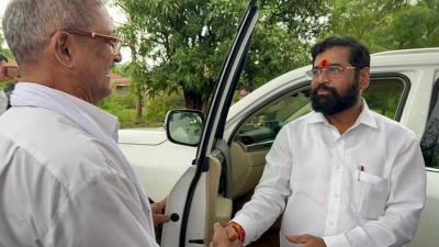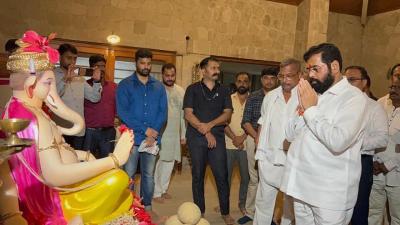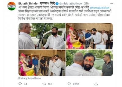 एकनाथ शिंदे यांनी नाना पाटेकर यांच्या पुणे जिल्ह्यातील सिंहगडाच्या पायथ्याशी असलेल्या डोणजे गावातील घराला भेट दिली. यावेळी पाटेकर यांच्या घरी स्थापना करण्यात आलेल्या श्री गणरायाचे दर्शन घेतले.
