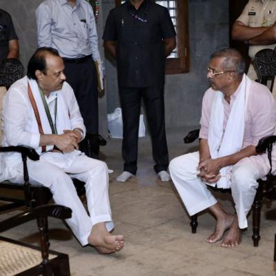 मुख्यमंत्र्यानंतर विरोधी पक्षनेते अजित पवार यांनीही नानांच्या घरी जाऊन बाप्पांचे दर्शन घेतले. स्वत; अजित पवार यांनी ट्विटर अकाऊंटवरुन या भेटीचे फोटो शेअर केले आहेत.