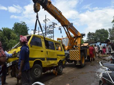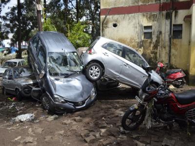 पावसाच्या पुरामुळे वाहनांची झालेली फजिती..