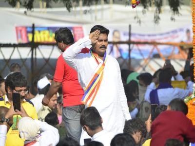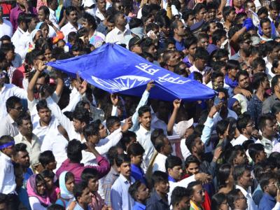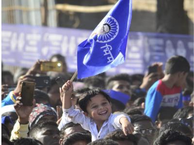 यात तरुणांची संख्या अधिक हाेती. निळे झेंडे तरुणांनी हातात धरले हाेते.