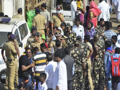 पुणे ग्रामीण पाेलीस अधिक्षक संदीप पाटील पाेलीस बंदाेबस्ताचा आढावा घेत हाेते.