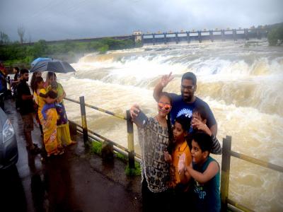 धो-धो कोसळणारा पाऊस आणि पूर्ण बसलेले खडकवासला धरण बघण्यासाठी पुणेकरांनी गर्दी केली होती.